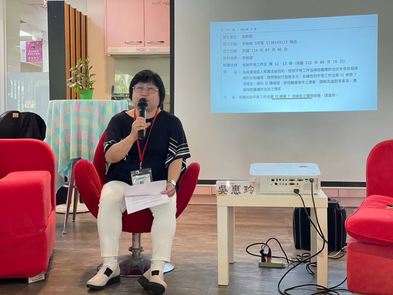 此外,她也指出,性別平等工作法第12條第7項在實務上與性騷擾防治法的適用範圍界線不清,中央主管機關函釋未能清楚劃分權責,導致第一線在案件歸屬上無所適從,徒增行政成本。