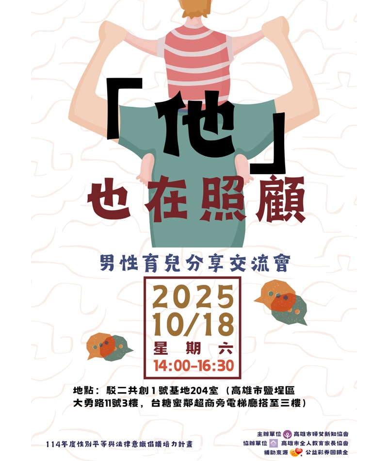 【「他」也在照顧——男性育兒分享交流會】#開始報名囉育兒的路上,有許多甜蜜,也有...